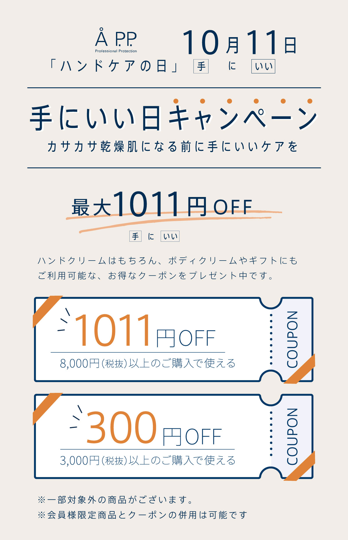 手荒れ予防のためにも「手(10)にいい(11)日」から、ハンドケアを始めませんか。